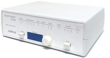 All StimTracker units include one white light sensor, one black light sensor, audio cable, USB cable, and a universal (100-240V) AC adapter.